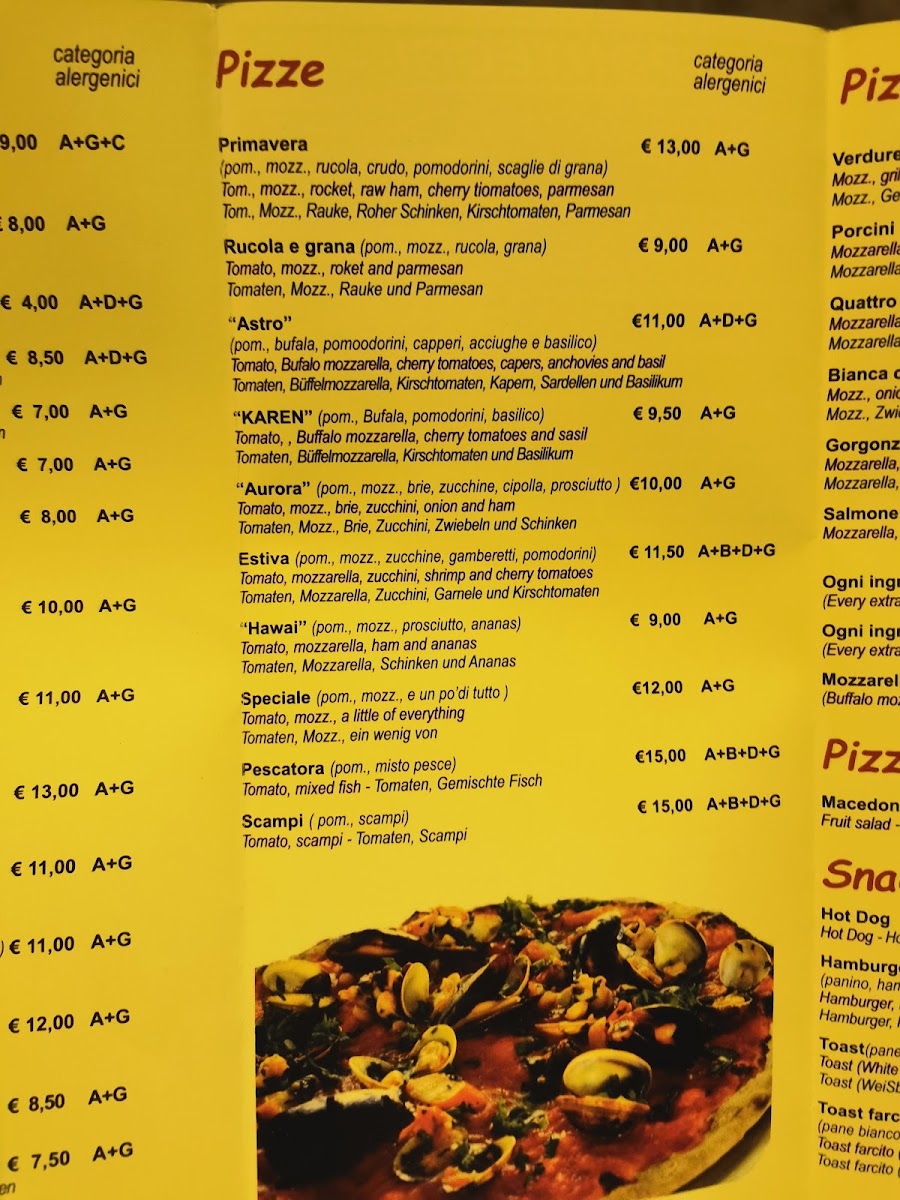 Astro da Artan, located in Caorle, Italy, offers a classic Italian dining experience with a focus on well-crafted pizzas and flavorful pastas. The menu highlights include their celebrated salami pizza, praised for its authentic taste and perfect leavening, alongside rich seafood rice dishes that stand out as excellent first courses. Pasta lovers will appreciate the variety, although timing between courses may vary. Gluten-free options, such as pizza paired with local beers, cater thoughtfully to dietary needs. While desserts are noted for their taste, second courses receive mixed feedback. The ambiance once featured inviting outdoor seating, enhancing the meal, though recent changes in ownership and location have impacted these offerings. The friendly staff consistently earn praise for their service, creating a welcoming atmosphere. Overall, Astro da Artan remains a solid choice for traditional Italian fare with memorable highlights, especially the pizza and seafood rice, despite evolving challenges in recent times.